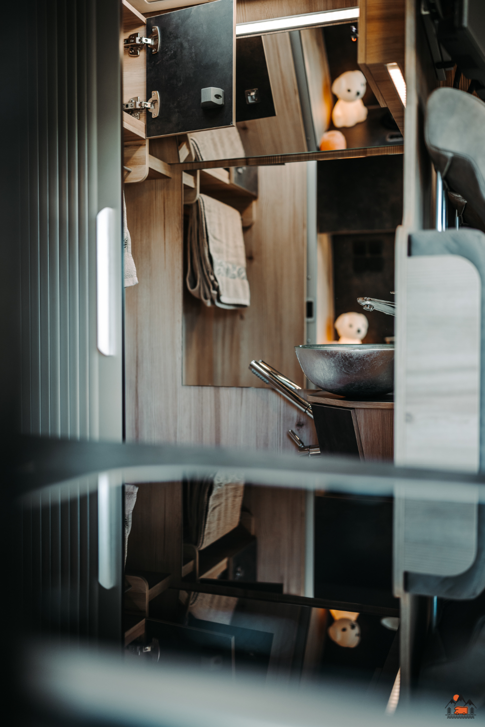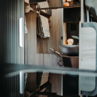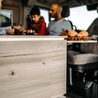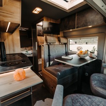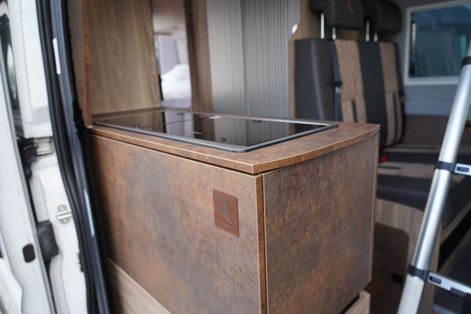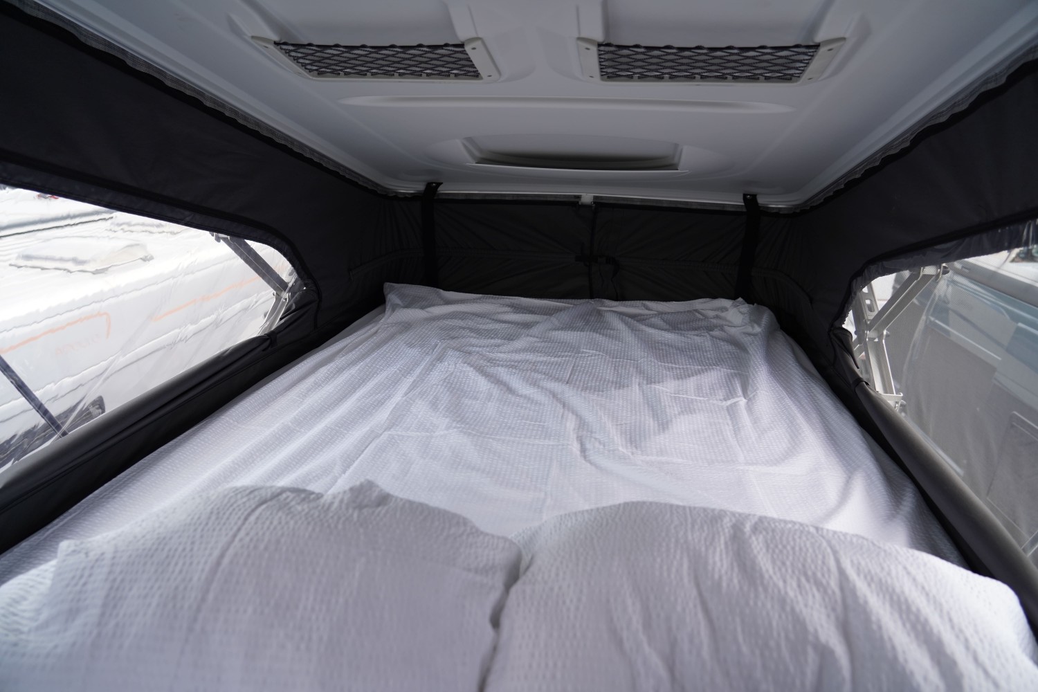 Pop-up streha omogoča dodatno spalno površino in poveča prostor v bivalnem delu, vozilo pa ostaja enostavno za vožnjo. Premišljena razporeditev vključuje široko zadnjo posteljo (190 x 187 cm), kuhinjo, kopalnico s tušem, dinetni del, klimo in bivalno ogrevanje.