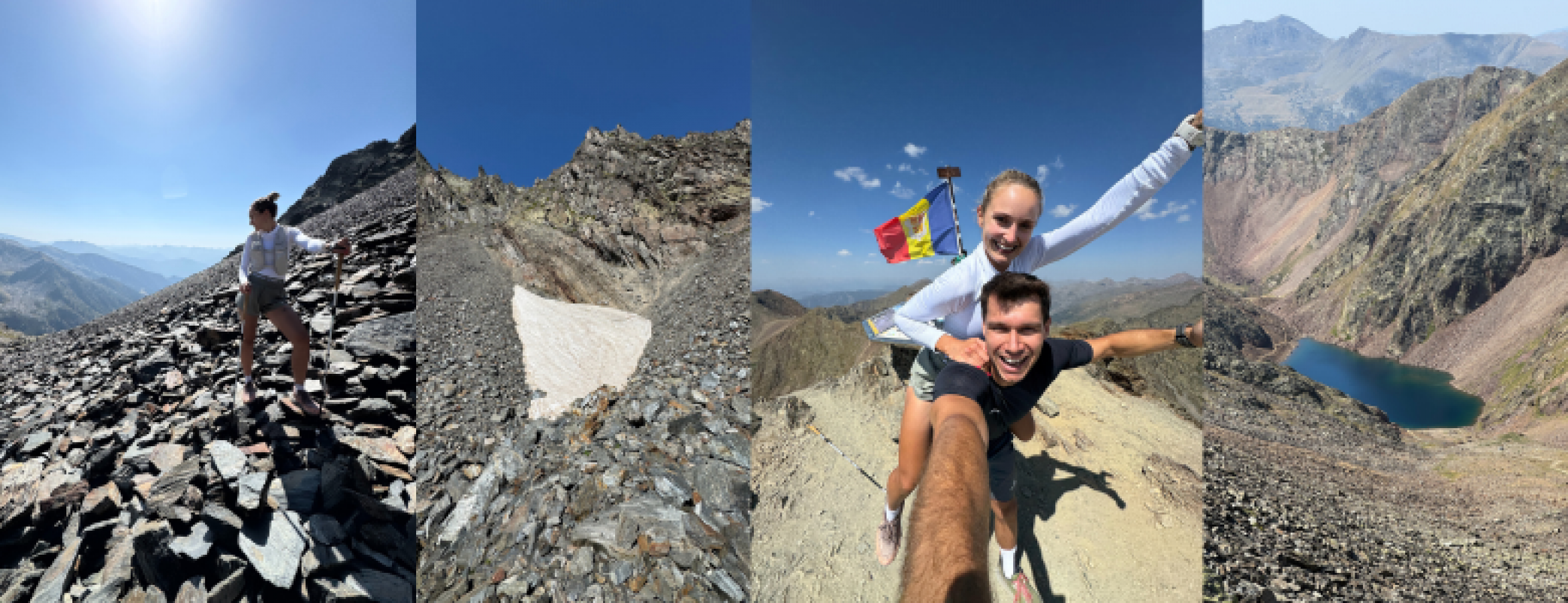 Po hladni in dobro prespani noči sva se odpravila na pot proti najvišjemu vrhu Andore – Comapedrosi - 2942m. Pot sva, kot običajno, poiskala na Komootu. Opisana je bila kot enostavna, a hitro sva spoznala, da se razmere v Andori precej razlikujejo od slovenskih. Oznake so redke in rumene barve, kar zlahka zamešeš z lišajem, polovica vzpona pa je vodila čez kamnit plaz, kjer noben korak ni bil varen.