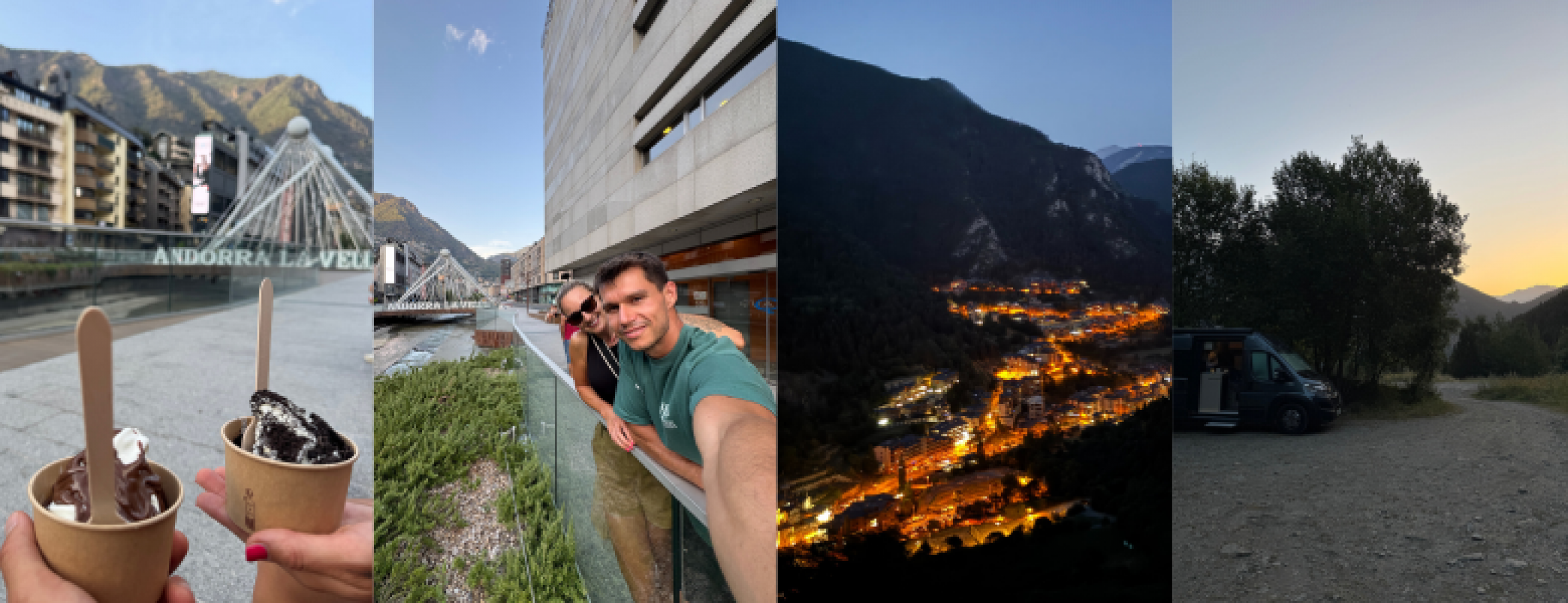 V Andorro la Vello sva prispela okoli 19. ure in parkirala na javnem parkirišču, kjer ena ura parkiranja stane le 0,25 €, plačljivo pa je le do 20. ure (📍 Crta. de la Plana, 2, AD500 Andorra la Vella). Sprehodila sva se po mestu, kjer so trgovine ravno zaključevale dan, nato pa si privoščila odličen frozen jogurt v MYCORNER SUNSET (📍 Edifici Quars, Av. Consell d'Europa, 14).