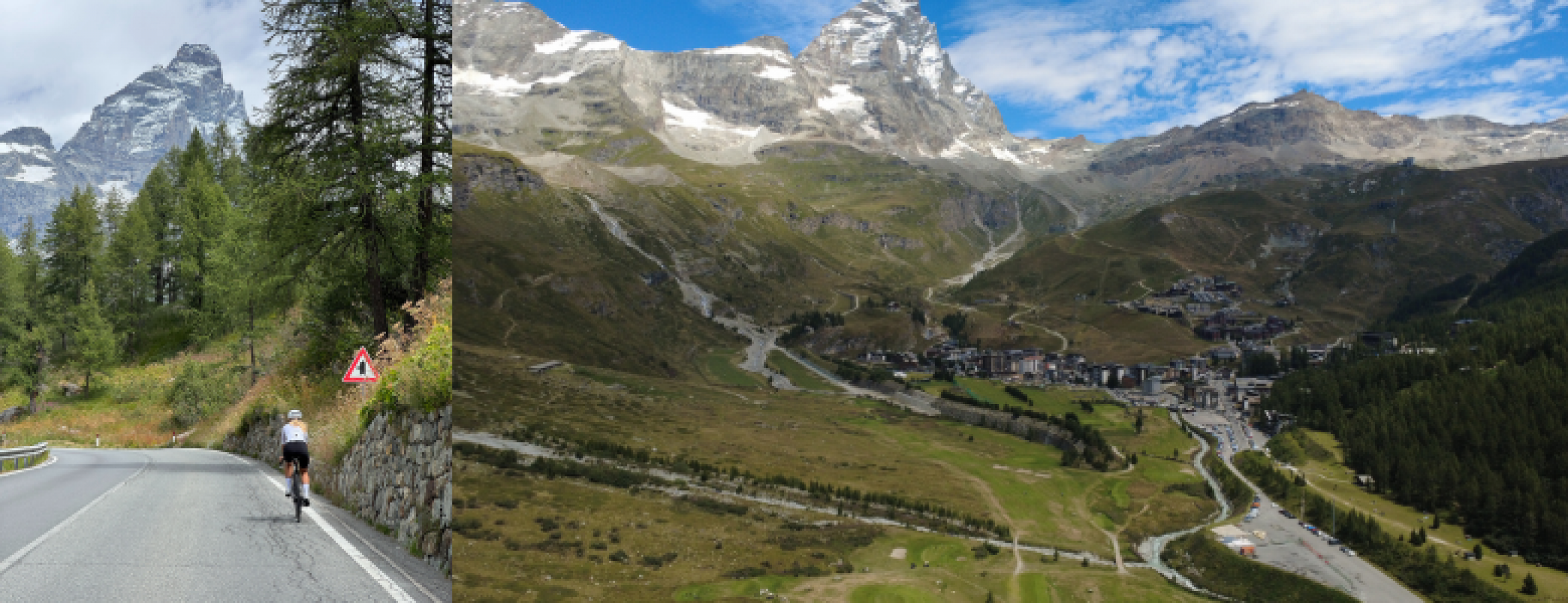Po odlični prvi noči sva se zjutraj odpravila na kolesarsko turo do Breuil-Cervinie, približno 20 km dolgo pot z dih jemajočimi razgledi na Matterhorn. Mesto pod mogočno goro naju je popolnoma očaralo. Na poti nazaj sva se ustavila pri jezeru Lago di Maen in uživala v čudovitih razgledih.
