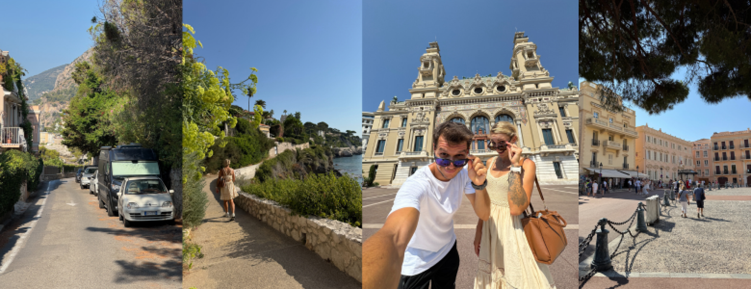 Tokrat sva parkirišče iskala blizu Monaka, a še vedno izven njegovega ozemlja. Na Park4Night sva našla brezplačno parkirišče na obali, približno 2 km iz Monaka. Že aplikacija je opozarjala, da gre za zelo ozek dostop – primeren samo za manjše kamperje. Ulice so bile res ozke, a to ni bil problem. Težava je nastala šele pri morju, kjer je bila že tako ozka cesta zaparkirane z luksuznimi avtomobili pred elitno restavracijo.