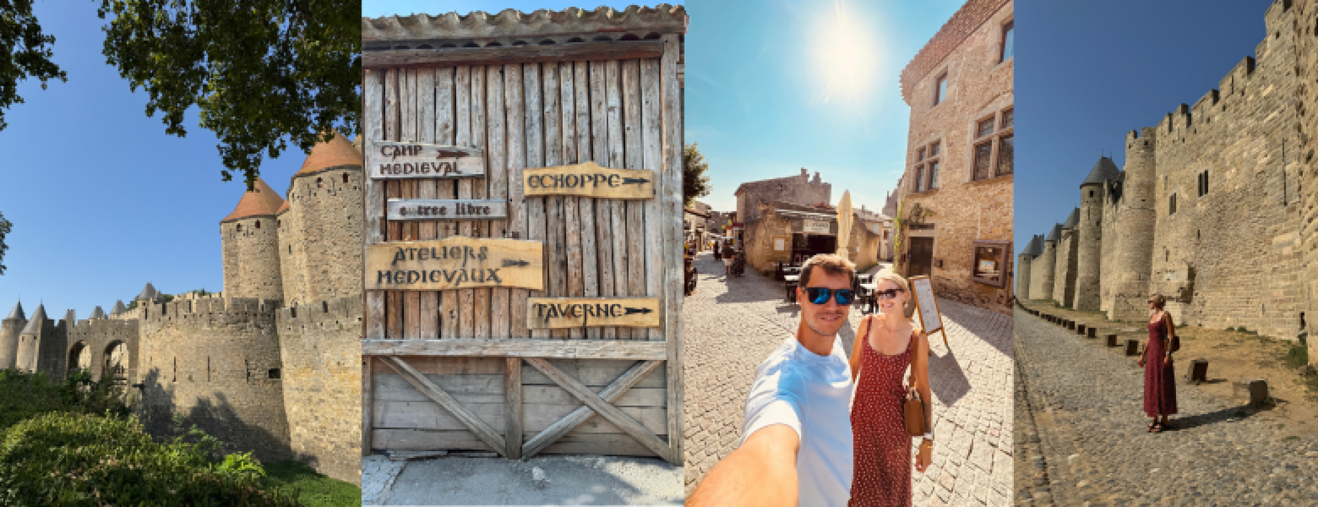 A vseeno nama to ni pokvarilo dneva. Dopoldne sva preživela v mestu Carcassonne. Parkirala sva 2 km od obzidja, ob javnem kopališču (📍lokacija: 22 Rue du Général Laperrine, 11000 Carcassonne, Francija). Mesto naju je očaralo – gre za srednjeveško mestece znotraj mesta, ki dejansko živi. Če izvzamem nekaj turističnih trgovinic, imaš res občutek, da si vstopil v drug čas.