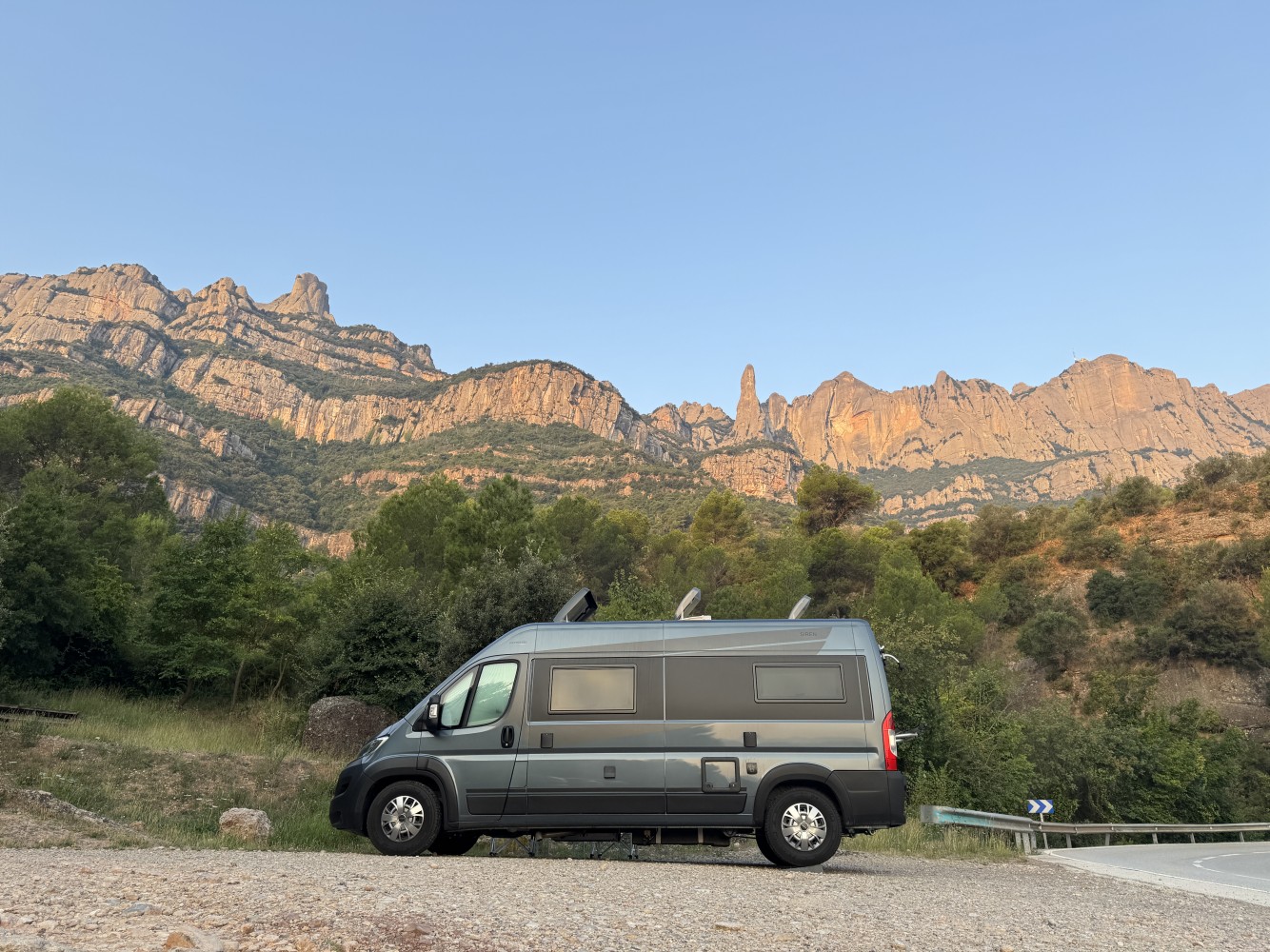 Parkirala sva ob vznožju poti proti samostanu Montserrat Monastery (📍 112 Carrer de la Trinitat, 08691 Monistrol de Montserrat, Spain). Kmalu po prihodu sta naju obiskala dva park rangerja – prijazna mlada punca in izkušen gospod – ter pojasnila, da je kampiranje v nacionalnem parku prepovedano. Vseeno pa nama je bilo dovoljeno prenočiti v vozilu, le tendo, mizo in stole sva morala pospraviti po večerji.
